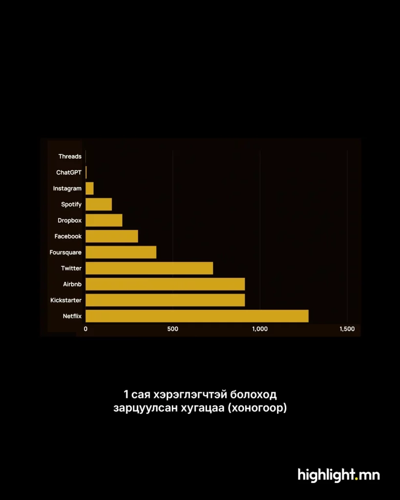 AI технологи маш богино хугацаанд дэлхий даяар тархаж, бараг 1 тэрбум хэрэглэгчид хүрч байгаа нь технологийн хөгжлийн хурд урьд өмнө байгаагүй түвшинд хүрснийг илтгэж байна.